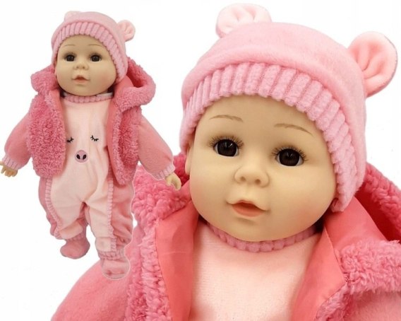 Lalka mówi i śpiewa po polsku. Łatwy dostęp do modułu dźwiękowego. Głowa, ręce i nogi lalki wykonane są z winylu, korpus miękki wykonany z materiału. Ubranko można zdjęć i prać.