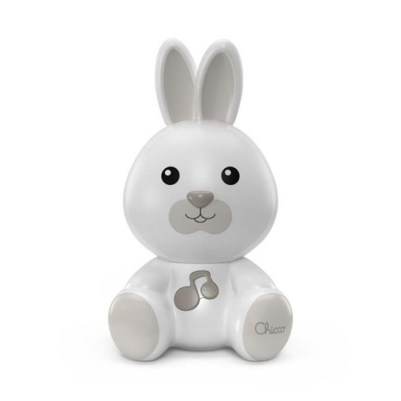 Króliczek świeci ciepłym, uspokajającym światłem, idealnym do zasypiania.