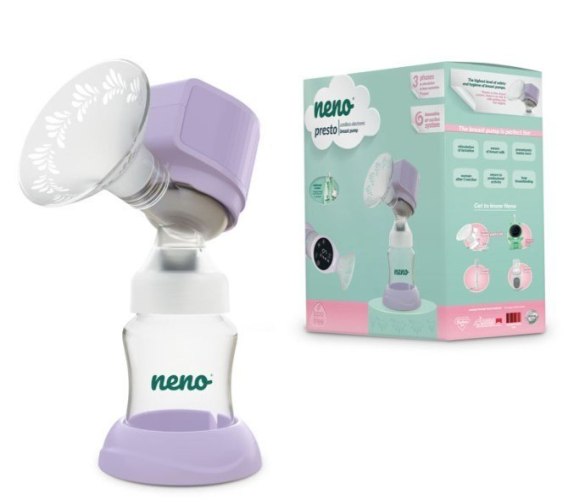 Neno Presto to pojedynczy, bezprzewodowy laktator trzyfazowy z dziewięciopoziomową regulacją ssania. Jest idealny dla kobiet karmiących piersią po naturalnym porodzie lub cesarskim cięciu. Zapewnia wsparcie w przypadku problemów laktacyjnych, takich jak zastój lub niedobór pokarmu.