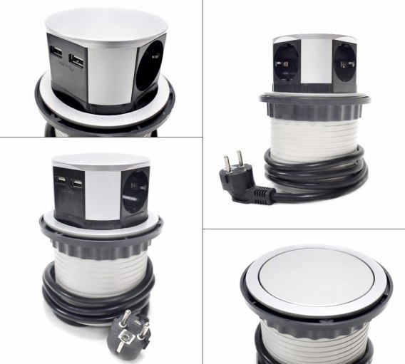 4-krotne gniazdo stołowe chowane z usb