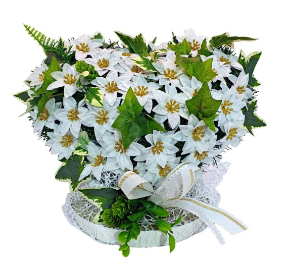 Serca stanową istotny element Świątecznej aranżacji! Nasze projekty cechują się wyjątkowo gęstym splotem sztucznych gałązek iglastych (PCV), które tworzą estetycznie wyglądające tło dla unikalnej i niespotykanej kompozycji kwiatów oraz ozdób świątecznych. Starannie dobrane detale są niezwykle realistyczne i naturalne, dodając stroikowi autentyczności i podkreślając jego ciepły a zarazem uroczysty charakter.