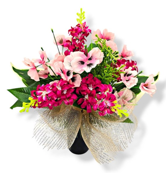 Kompozycje nagrobne z obciążeniem z wysokiej jakości sztucznych kwiatów i roślin.