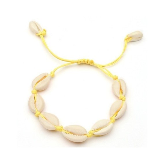 Bransoletka z muszelkami na rękę lub stopęBransoletka z regulacjąCena dotyczy jednej sztuki Wykonana ze stopu metali nieszlachetnychNie zawiera niklu ani chromu