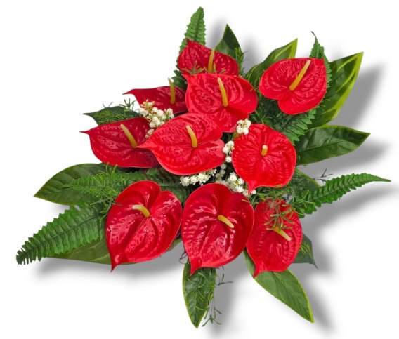 Kompozycje nagrobne z wysokiej jakości sztucznych kwiatów i roślin.