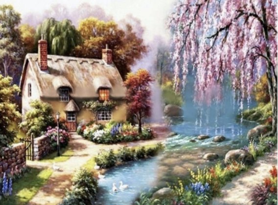Diamentowa mozaika Domek nad strumykiem