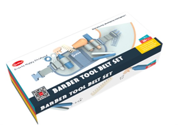 Drewniany zestaw fryzjerski z regulowanym pasem i akcesoriami to propozycja dla dzieci od 3-go roku życia. Wszystkie akcesoria fryzjerskie wykonane są z drewna, nie posiadają ostrych krawędzi, są bezpieczne i wytrzymałe. Pas jest regulowany i zapinany na zatrzask. Posiada kieszonkę w centralnej części i pięć przegródek, w których mieszczą się nożyczki fryzjerskie, suszarka do włosów, prostownica, maszynka do strzyżenia, grzebień i lakier do włosów. Zabawa tym zestawem pobudzi wyobraźnię dziecka.