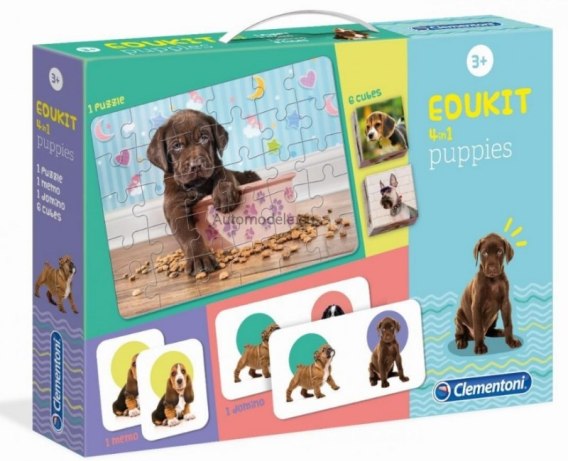 Zestaw 4w1 PUPPIES dzieci zwierząt z serii EduKit włoskiej firmy Clementoni, rozwija kreatywność,