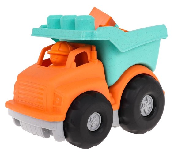 Wywrotka wykonana z bioplastiku i klocki, dla dzieci od 3-go roku życia. Eko-tworzywo jest bezpieczne dla dzieci i przyjazne dla środowiska. Wywrotka jest kolorowa, wytrzymała i odporna na uszkodzenia, posiada ruchome elementy. Przyczepę wywrotki można podnosić i opuszczać. Maluszek może również manualnie przesuwać pojazd po podłożu, dzięki dużym ruchomym kółeczkom. W zestawie z wywrotką znaleźć możemy również 7 klocków, również wykonanych z bioplastiku.