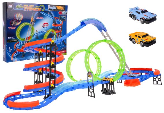 Ekstremalny Tor wyścigowy z Drabiną dla dzieci 3+ Elementy konstrukcyjne 116 el. + 2 Autka + 2 Pętle 360 stopni