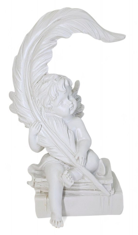 FIGURKA DEKORACYJNA ANIOŁ BIAŁY ANIOŁEK Z PIÓREM KSIĄŻKAMI