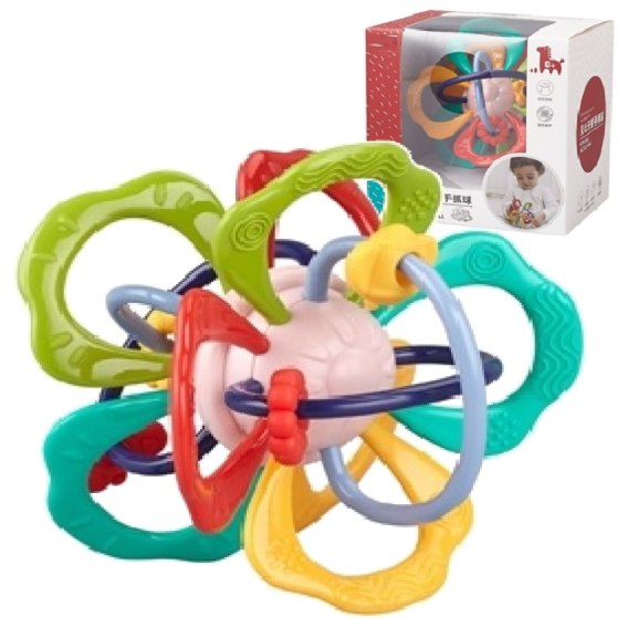Pierwsze miesiące życia dziecka są kluczowe, dlatego ważne jest, aby posiadać pomoce pozwalające na to aby nasze dzieciątko czuło się dobrze i bezpiecznie. Proponowana przez nas grzechotka jest idealna z wielu powodów. Po pierwsze posiada interesujące kolory oraz różnego rodzaju wypustki, inne na każdym elemencie. Dodatkowo wydaje dźwięk szczyrkania, gdy się przekręca dwie połówki i ma elementy ruchome, koraliki w kształcie pszczółek i kwiatuszków, co z pewnością zaciekawi dziecko. Wszyscy wiemy jak maluchy lubią wkładać rzeczy do buzi, zabaweczka nasza ma silikonowe elementy idealne do gryzienia, świetnie sprawdzi się w czasie ząbkowania.