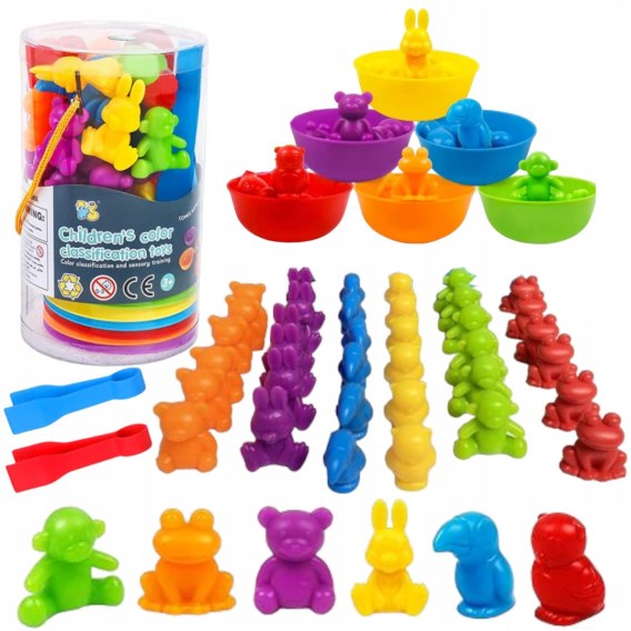 Figurki zwierzątka do nauki liczenia i kolorów gra sorter montesorri 36 el.