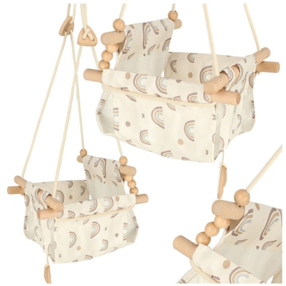 HUŚTAWKA DLA DZIECI MATERIAŁOWA DREWNIANA WISZĄCA