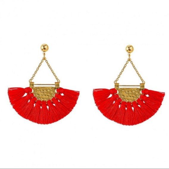KOLCZYKI KOŁA FRĘDZLE CHWOST CZERWONE K647CZE