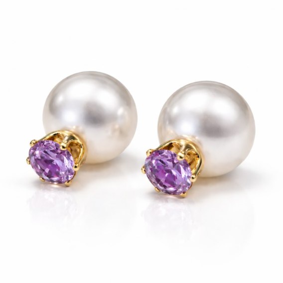 Kolczyki Kule Triball Perłowe z fioletowym Kryształem K70FIO