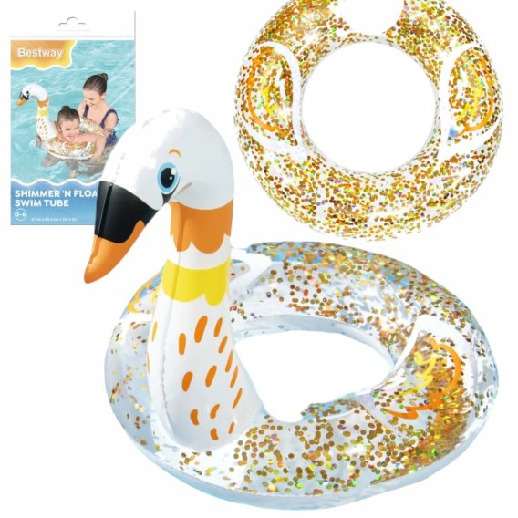 Kółko do pływania firmy Bestway, w kształcie białego łabędzia z brokatem jest idealne dla dzieci w wieku przedszkolnym i wczesnoszkolnym. Wytrzymały materiał z tworzywa PCV jest przeznaczony do wielokrotnego napełniania i opróżniania. Koło niezbędne jest do pomocy przy pływaniu oraz zabaw w wodzie. Kółko świetnie nadaję się zarówno nad morze czy jezioro, ale także na basen lub zabawy w ogrodzie.