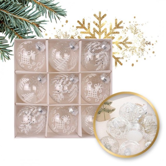 Komplet bombek bożonarodzeniowych 9 szt. opakowaniu białe średnica 8cm BSN42