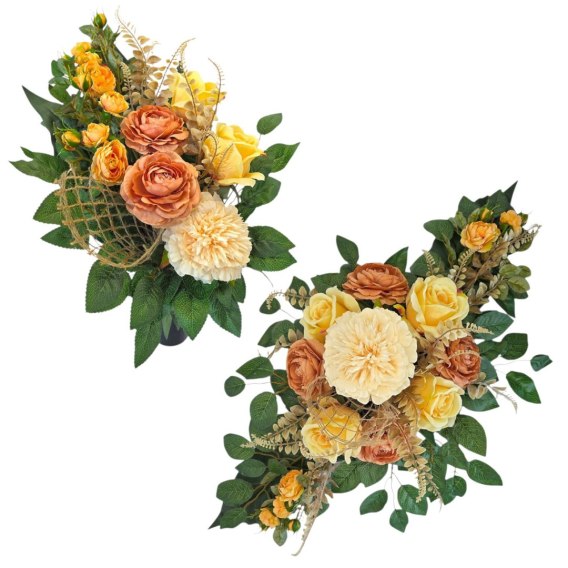 💚Ten komplet został przygotowany z myślą o spójnej i eleganckiej dekoracji nagrobka. Stroik i bukiet tworzą harmonijną całość, która w piękny sposób podkreśli pamięć o bliskich, zapewniając uroczysty i zadbany wygląd pomnika💚