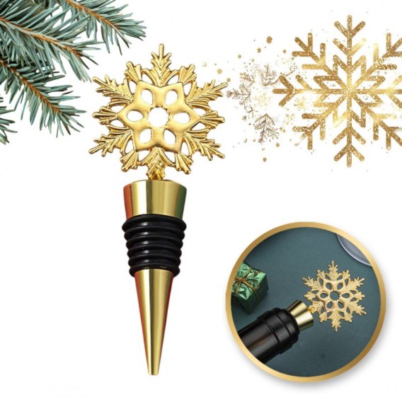 Korek, zatyczka do wina złota świąteczna ŚNIEŻYNKA BOŻE NARODZENIE AB05