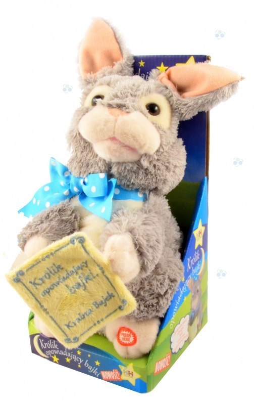 Królik opowiada bajki spokojnym, wyraźnym głosem, a podczas opowiadania bajek porusza głową zupełnie jak żywy.