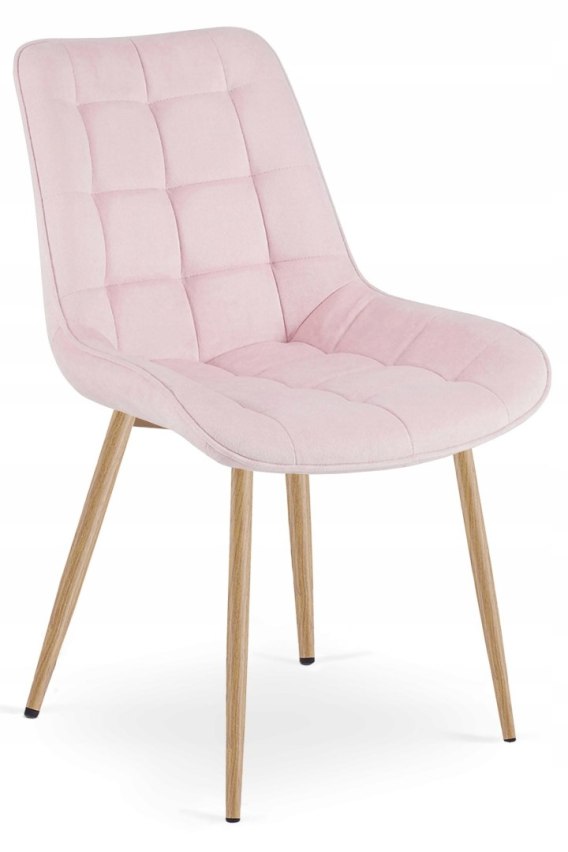 Krzesło BERA - aksamit róż jasny / nogi dąb x 4