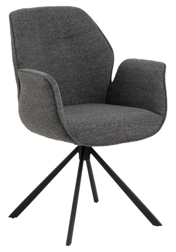 Krzesło obrotowe z podłokietnikami Aura posiada charakterystyczną sylwetkę i cechuje się nowoczesną elegancją. To krzesło do jadalni jest idealne do każdego nowoczesnego domu. Siedzisko tapicerowane jest antracytową tkaniną Monza o eleganckim wyglądzie. Aby jeszcze bardziej podkreślić nowoczesny wygląd przy projektowaniu wykorzystano czarną metalową podstawę w kształcie 4 ramiennej gwiazdy. Co ważne podstawa ma funkcję obrotową. Główne cechy Nowoczesne krzesło do jadalni z odrobiną elegancji Tapicerowane antracytową tkaniną z efektem dwóch odcieni Czarna, malowana proszkowo metalowa podstawa z funkcją obrotu Wyraziste detale z lamówki Duński projekt chroniony wyłącznie dla Actona Szerokość siedziska: 45cm Głębokość siedziska: 44cm Wysokość oparcia: 45cm Ilość kartonów: 1 Wymiary kartonów: 77x61,5x65cm Waga kartonów: 10,6kg