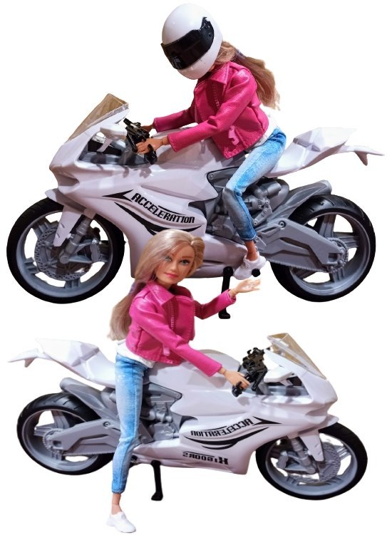 Lalka na Motorze Sportowym Ścigaczu Motor Biały #A1