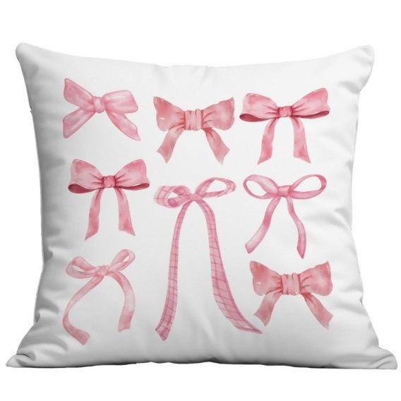 Lniana poszewka na poduszkę 45 x 45 cm biała, KOKARDKI różowe POD230