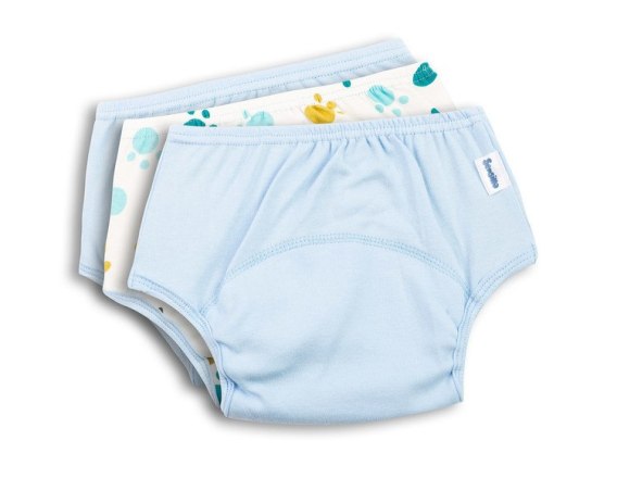 Majtki treningowe ułatwiają naukę czystości. Przydają się więc szczególnie podczas ostatniej fazy odpieluchowywania. Doskonale nadają się także na pierwszą parę „prawdziwej" bielizny, pomagając w nauce samodzielnego ubierania się. Wykonane z delikatnej i przewiewnej bawełny. Wewnątrz posiadają warstwę z membrany poliuretanowej, która ogranicza przemakalność. Wzory w zestawach są dobierane losowo według dostępności materiałów. Natomiast zawsze zostaje zachowany podział na zestawy dedykowane chłopakom i dziewczynkom.