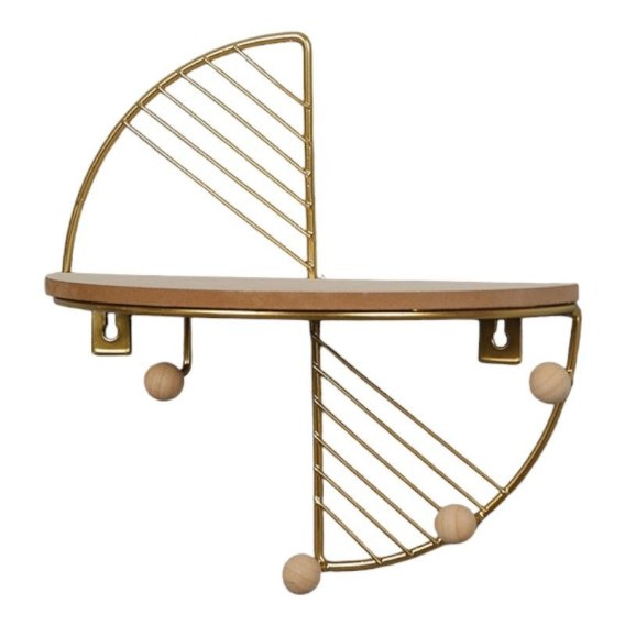Dodaj odrobinę elegancji i funkcjonalności do swojego wnętrza dzięki naszej małej metalowej półce w kształcie wachlarzy z wieszakami. Dostępna w dwóch stylowych kolorach - złotym i czarnym, ta półka stanowi idealne połączenie nowoczesnego designu i praktyczności.