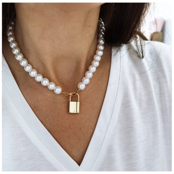 NASZYJNIK SZTUCZNE perły z kłódką N710