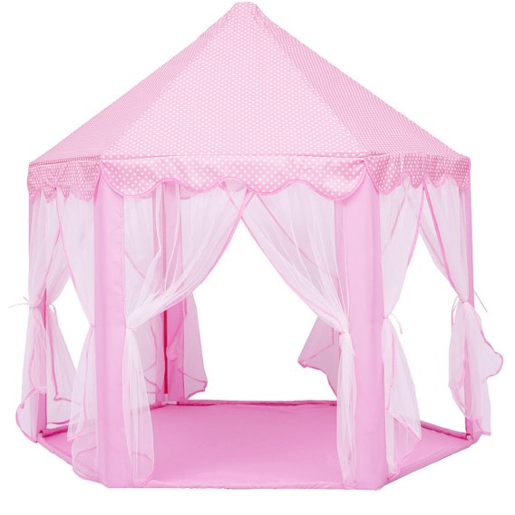 Namiot ma okrągły kształt i stożkowaty dach jak w zamkowej wieży. Ponadto namiot posiada podłogę dzięki, której Twoje dziecko nie pobrudzi się podczas zabawy. Lekka konstrukcja domku sprawia, że można go w łatwy sposób złożyć i przenosić w różne miejsca ogrodu czy domu. Materiał, z którego został wykonany namiot jest łatwy w czyszczeniu. Po złożeniu namiot zajmuje mało miejsca, dzięki czemu łatwo można go zabrać na wyjazd rodzinny lub urlop.
