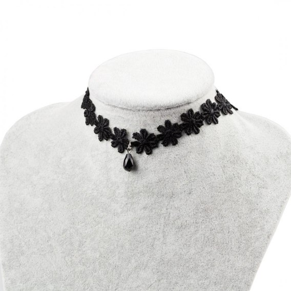 Naszyjnik czarny choker kwiatuszki z przywieszką N283