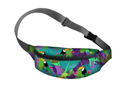 Saszetka nerka YOUNG do noszenia w pasie z motywem Tukan Green