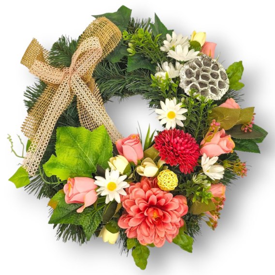 1. Zdjęcia są poglądowe. Każdy wieniec jest wykonany i ozdabiany ręcznie dlatego układ kwiatów oraz kolorystyka mogą minimalnie różnić się od prezentowanego wzoru na zdjęciach.