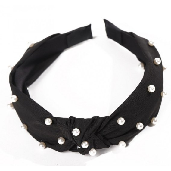 Opaska turban z materiału gruba czerń perełki O227CZ