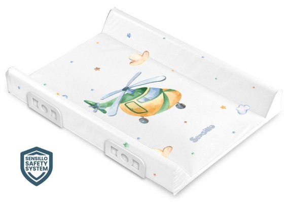 Przewijak usztywniany Sensillo z wesołymi nadrukami, został przygotowany z myślą o komfortowej pielęgnacji najmłodszych. Załączone do zestawu nóżki pozwalają na bezpieczny i stabilny montaż bezpośrednio na łóżeczku o szerokości 60 cm. Przewijak może być również zamontowany na komodzie lub innym stabilnym podłożu. Przewijak wyróżnia się innowacyjnym systemem bezpieczeństwa Sensillo Safety System, który zapobiega wypadnięciu dziecka, dzięki dodatkowym bocznym wzmocnieniom. Do produkcji użyliśmy najwyższej jakości materiałów zapewniających maksymalne bezpieczeństwo i komfort użytkowania. Ceratka, którą pokryty jest przewijak niemowlęcy Sensillo jest w pełni bezpieczna dla zdrowia dziecka - nie zawiera ftalanów, metali ciężkich oraz innych szkodliwych substancji.