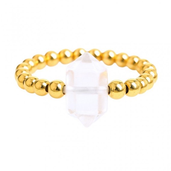 Pierścionek na gumce stal chirurgiczna pozłacana kryształ górski PST870