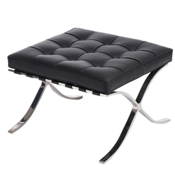 Jest to zaprojektowany w 1929 roku podnóżek, który powstał na zamówienie, i stanął w niemieckim pawilonie na wystawie w Barcelonie.,Charakterystycznie powyginana w kształt litery "X" chromowana podstawa oraz pikowana w kwadraty skóra naturalna to najbardziej charakterystyczne cechy tego podnóżka. Uzupełnieniem tego produktu jest fotel Barcelona i Barcelona stolik.,Podnóżek wykonany całkowicie ze skóry naturalnej.,