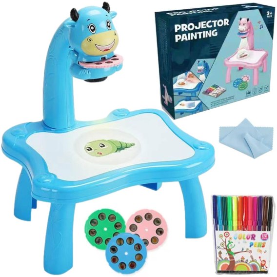 Projektor Led rysunek artystyczny stół zabawki dzieci tabliczka do rysowania malowania biurko pisanie rzemiosło nauczanie edukacyjne narzędzia zabawka dla chłopczyka niebieski krówka
