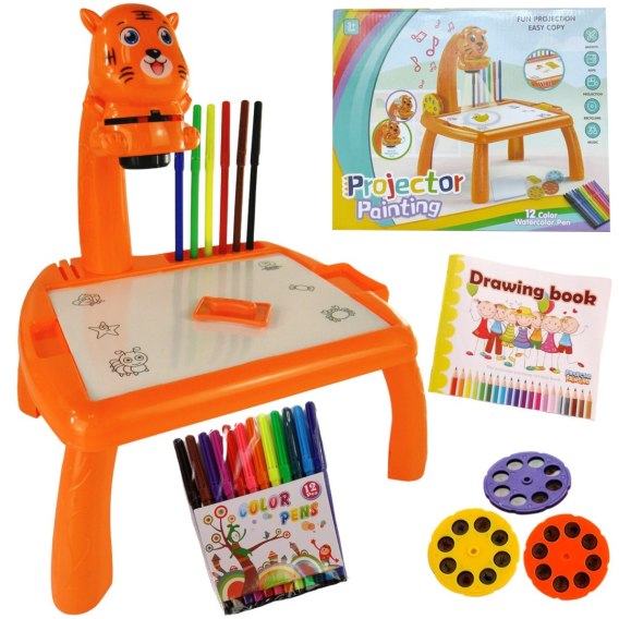 Projektor Led rysunek artystyczny stół zabawki dzieci tabliczka do rysowania malowania biurko pisanie rzemiosło nauczanie edukacyjne narzędzia zabawka dla chłopca pomarańczowy tygrys