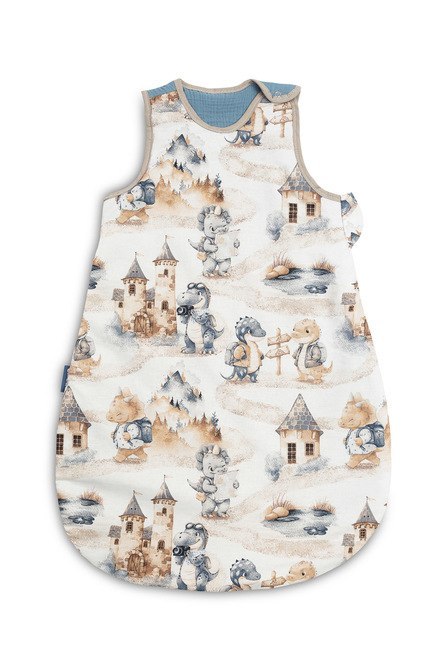 Śpiworek do spania będzie służył dzieciom już od pierwszych dni życia (0-9 miesięcy) zapewniając im ciepło i bezpieczeństwo. Uszyty jest z miękkiej bawełny wypełnionej otuliną. Wnętrze i tył śpiworka są wykonane z bawełny muślinowej. Produkt nie zawiera twardych elementów, które mogłyby podrażnić skórę dziecka. Wyposażony jest w dwustronny zamek błyskawiczny, poprowadzony wokół śpiworka, pozwalający na zmianę pieluchy bez wyciągania dziecka ze śpiworka.
