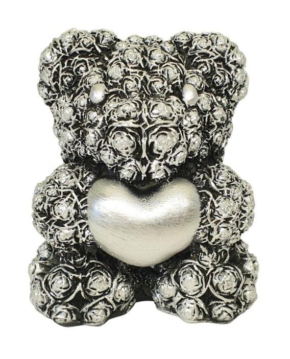 SREBRNA FIGURKA MIŚ Z SERCEM Z RÓŻYCZEK NA PREZENT UPOMINEK