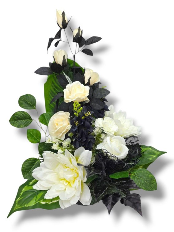 STROIK KOMPOZYCJA KWIATOWA MISA Z OBCIĄŻENIEM NA CMENTARZ GRÓB BIAŁO-CZARNE KWIATY