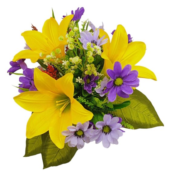Kompozycje nagrobne z obciążeniem z wysokiej jakości sztucznych kwiatów i roślin.