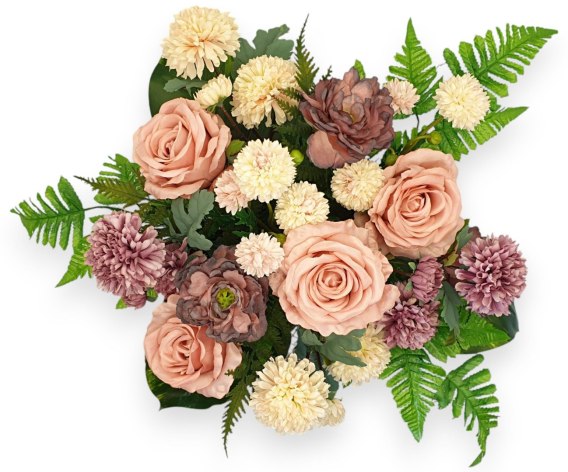 - Realistyczne i naturalne kwiaty: Nasz stroik zawiera unikalną kompozycję kwiatów, które wyglądają naturalnie i realistycznie, dodając autentyczności oraz elegancji.