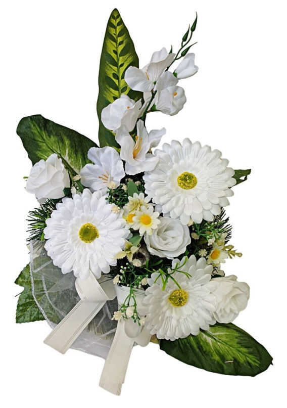 Kompozycje nagrobne z obciążeniem z wysokiej jakości sztucznych kwiatów i roślin.