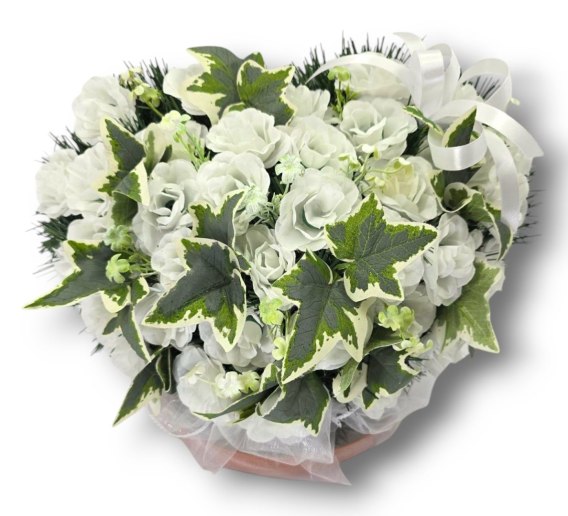 STROIK NA POMNIK SERCE KOMPOZYCJA KWIATOWA BIAŁE RÓŻE NA GRÓB