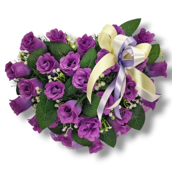 STROIK NA POMNIK SERCE KOMPOZYCJA KWIATOWA FIOLETOWE RÓŻE NA GRÓB