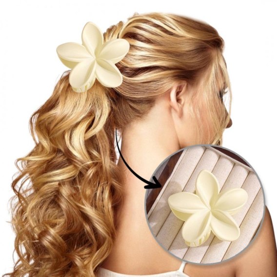 Spinka do włosów klamra XL kwiat matowy masełkowy, kremowy 7,5 x 8cm SP426
